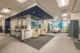 Project includes 10 simulation exam rooms, providing the feel of a hospital setting and a centrally located nurses station for observation of various healthcare scenarios. The various groups include nursing, occupational therapy, physical therapy, maternity, and pediatrics. The project also includes a training restroom, storage and locker area, and a